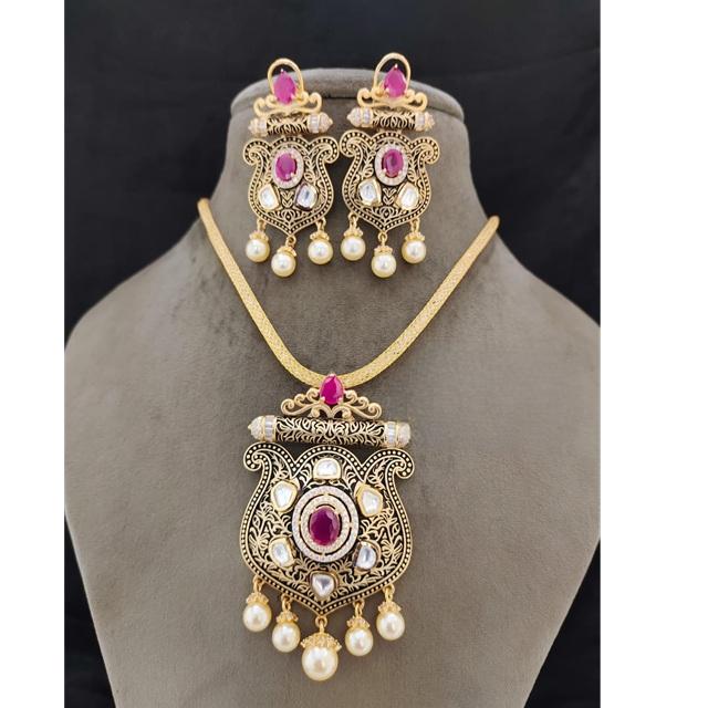 Trendy Best Quality Exclusive Design Gold Plated Chain Pendent Necklace Set With Earrings For Wedding Collection For Women