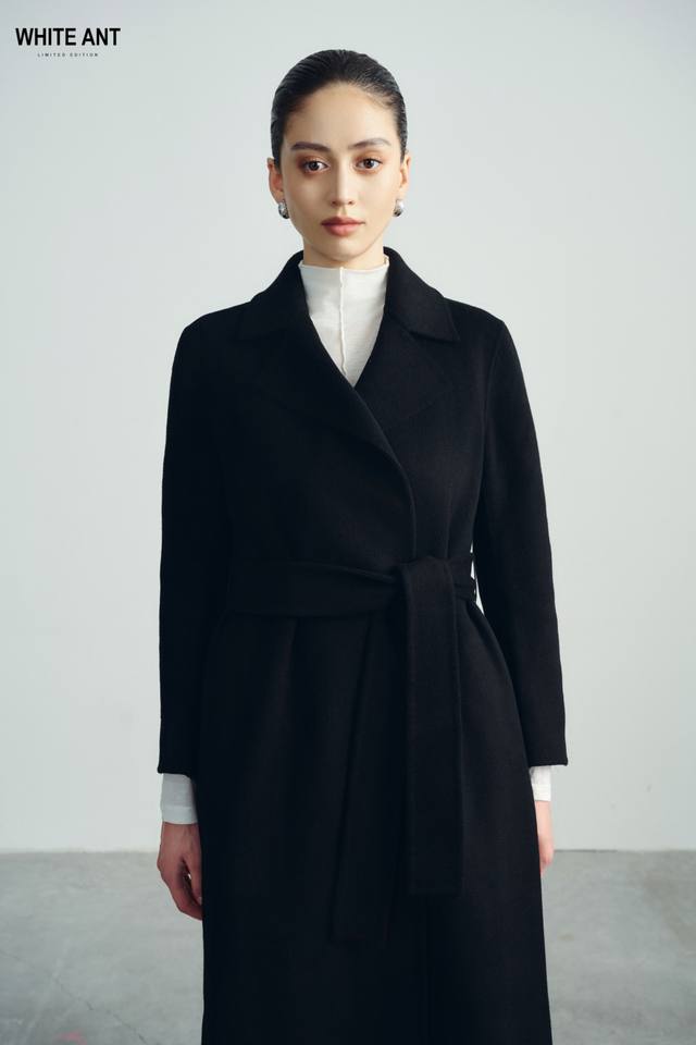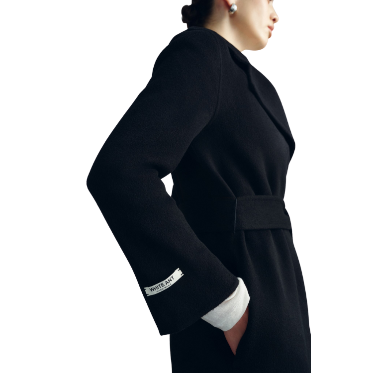 Trendy Black Mangto Shirt Best Price Luxury Long Hand-stitched Women's Coats With Belt GAIA LONG COAT Fabric 70% Wool 30% Alpaca
