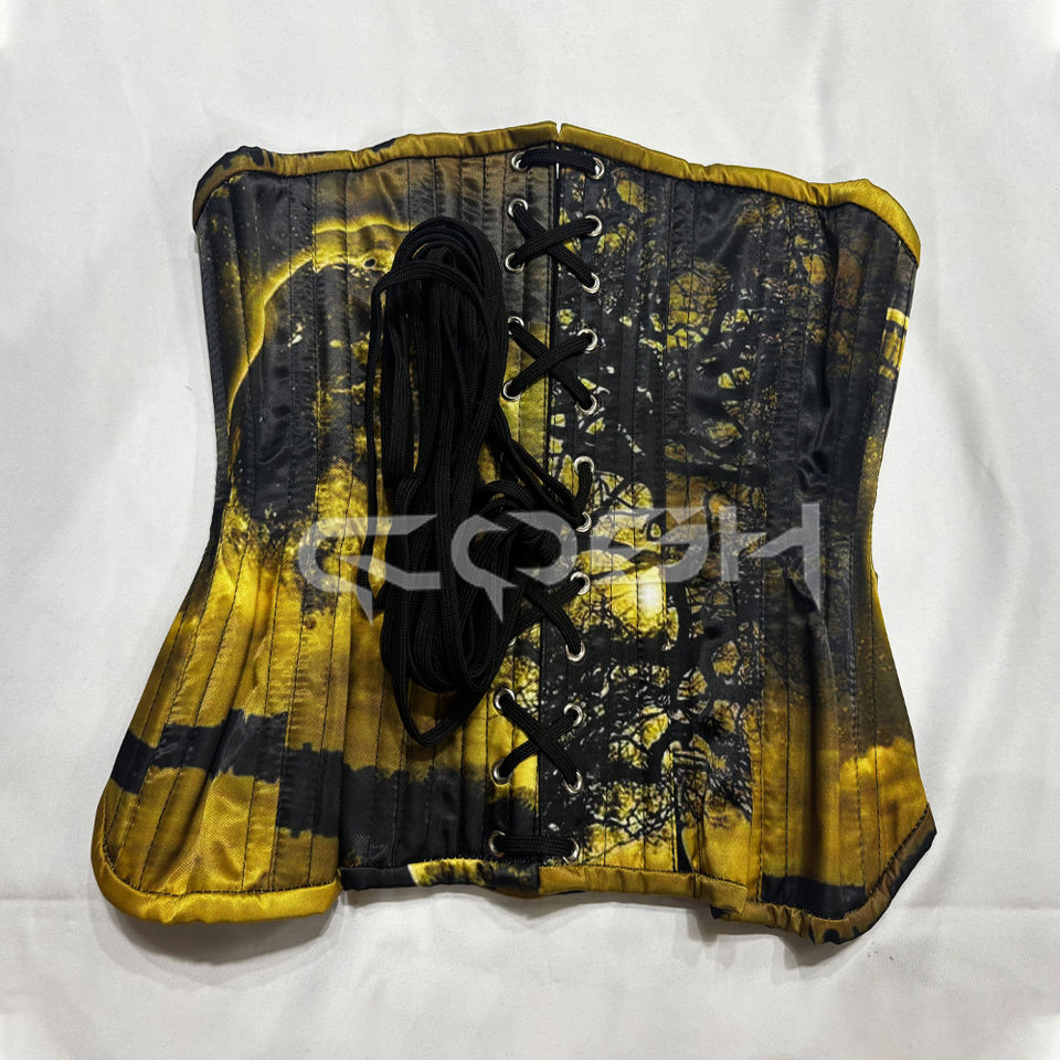Trendy Black Yellow Moonlight Corset Gothic Celestial Waist Training Corset Supplier from Pakistan