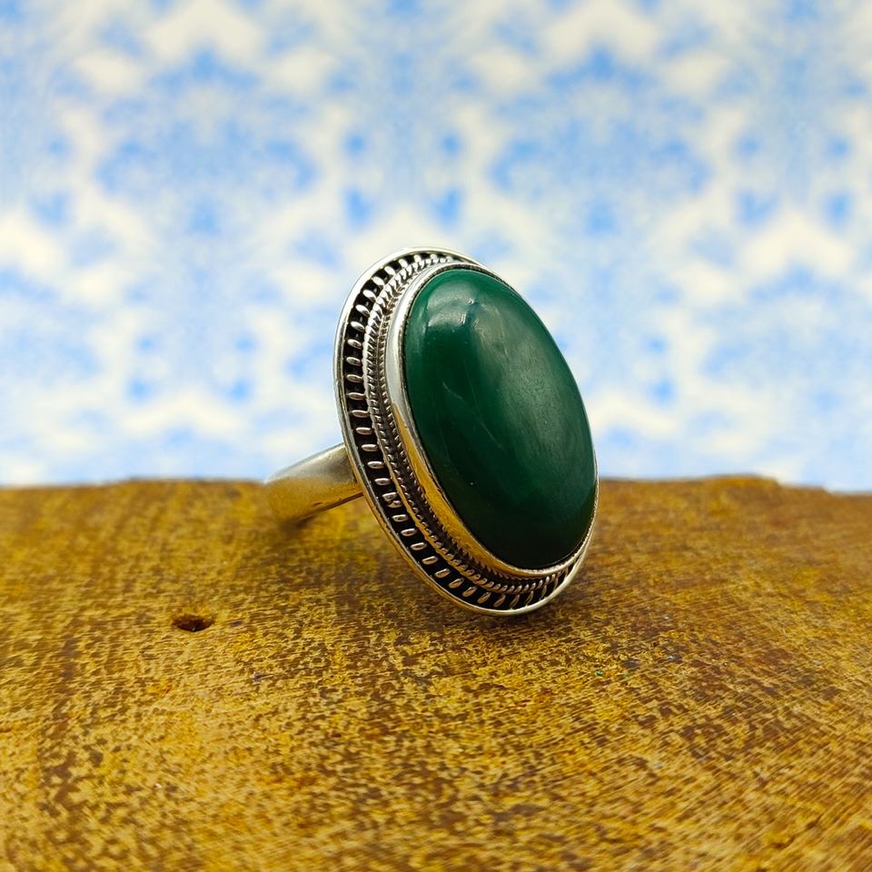 Trendy Bohemian 925 Silver Artisan Crafted Ring with Natural Malachite Bezel Setting Inlay Party Wedding Gift