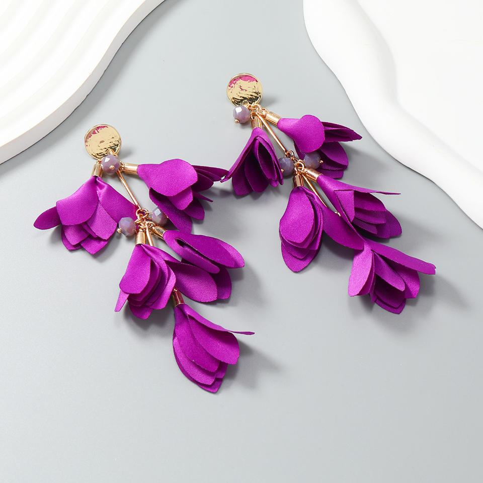 Trendy Bohemian Style Petal Tassel Flower Earrings Pendant Titanium Jewelry Turquoise Pearl Diamond Main Stone for Parties Gifts