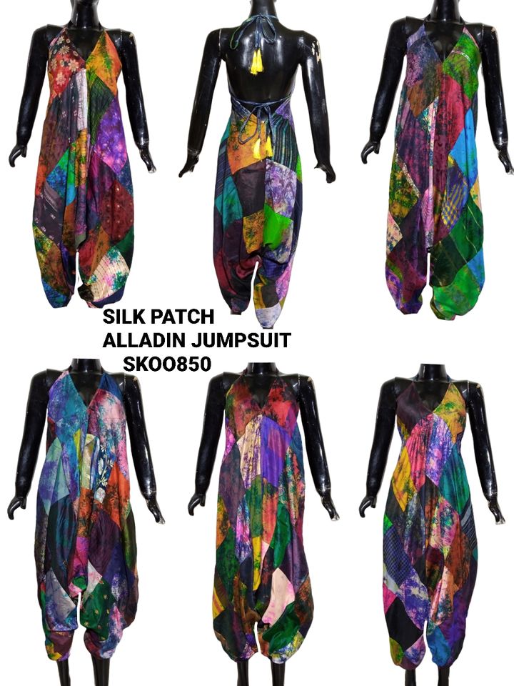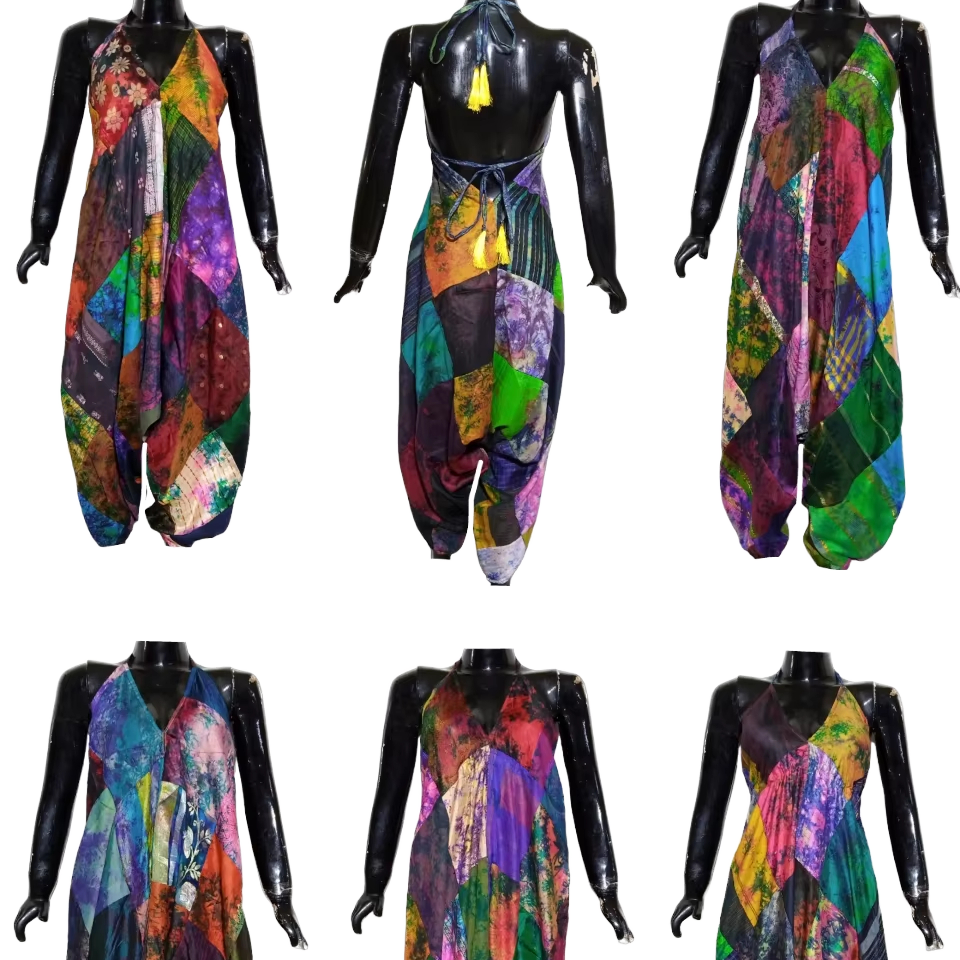 Trendy Vintage Boho Gypsy Hippie Style Aladdin Jumpsuit for Women Colorful Silk Patch Print Plus Size Party in Every Piece