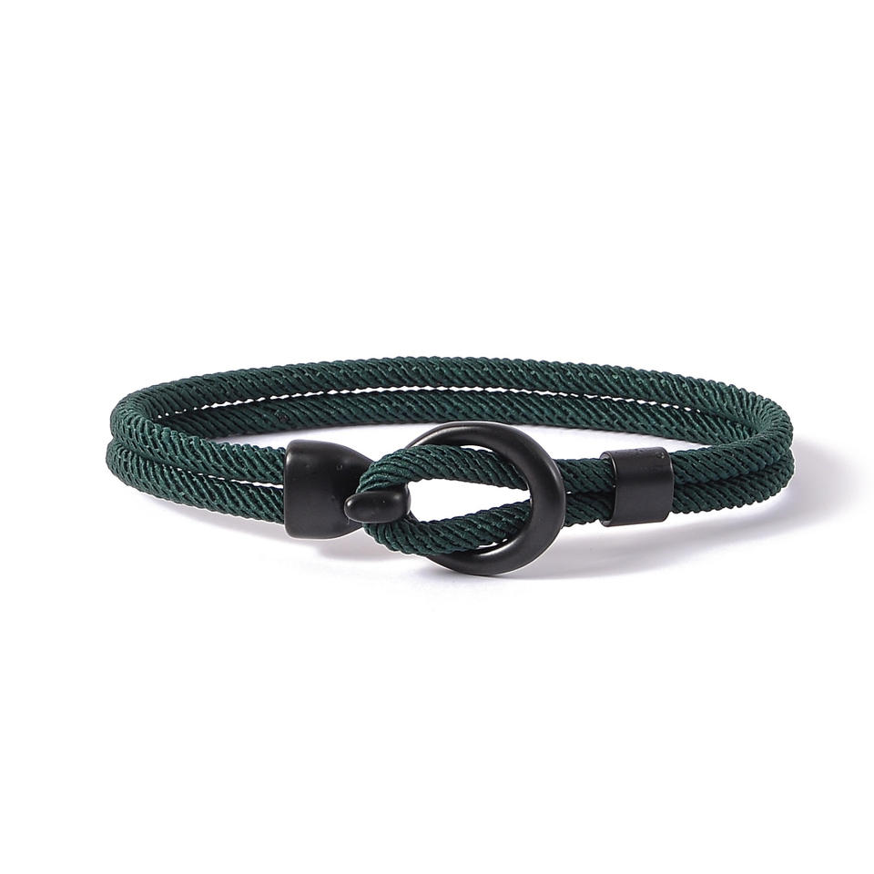 Trendy Braided Rope Beaded Bracelets for Men Women Stainless Steel Black Buckle O Shape Clasp Surf Jewelry for Beach Couple Gift
