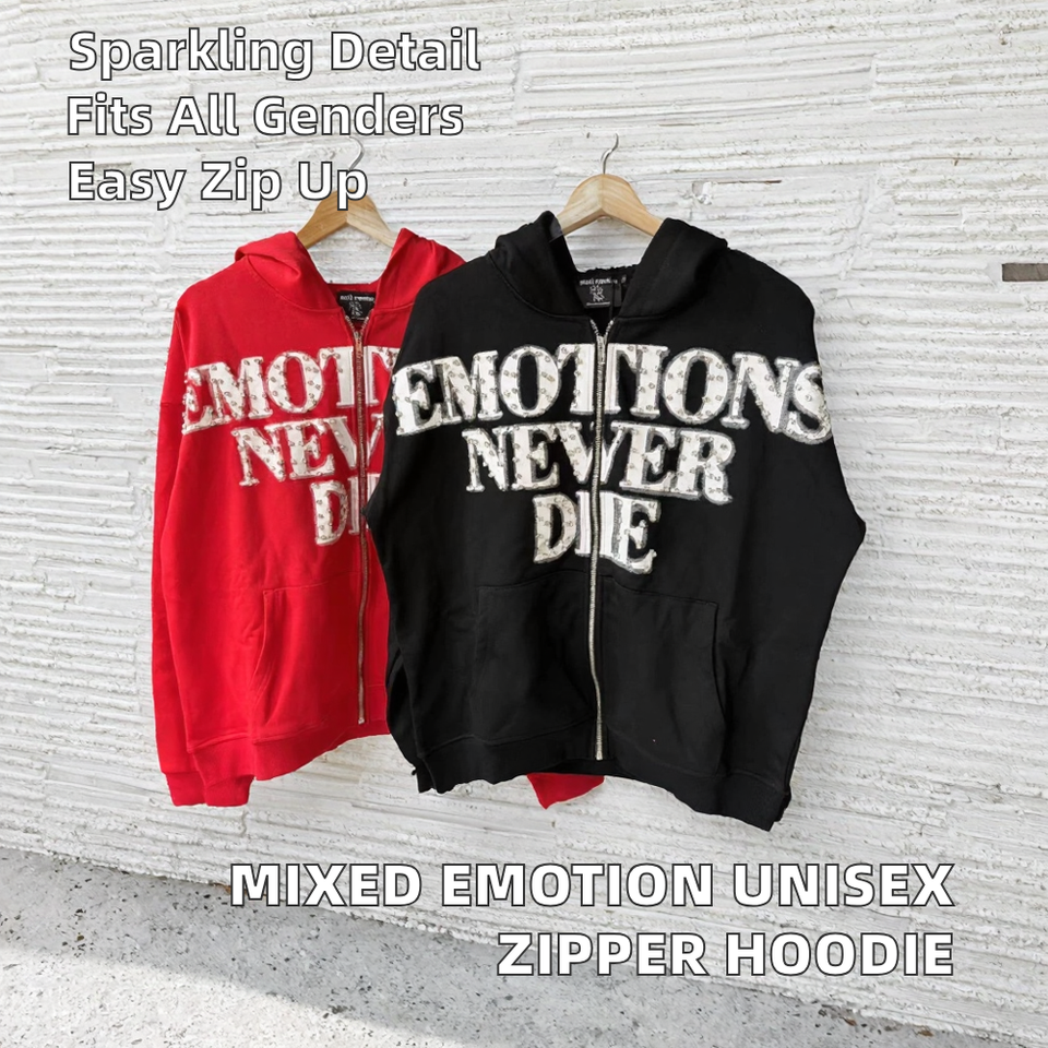 Trendy Brand MIXED EMOTION Rhinestone Hot Drilling Letter Printing Half Zip Hooded Bamboo Fiber Cardigan Sweater Unisex ODM