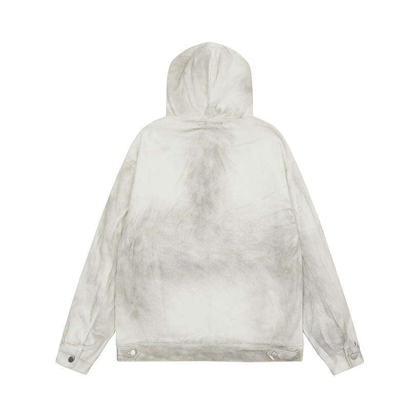 Trendy Brand Straps Design Hooded Denim Sweatshirt Unisex American Retro Washed Distressed Pullover Hoodies