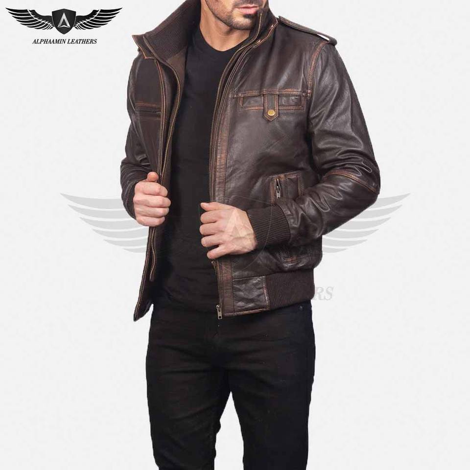 Trendy Brown Leather Jacket Men High Street Style Outerwear Premium Material Comfortable Fit Durable Winter Warm Leather Jackets