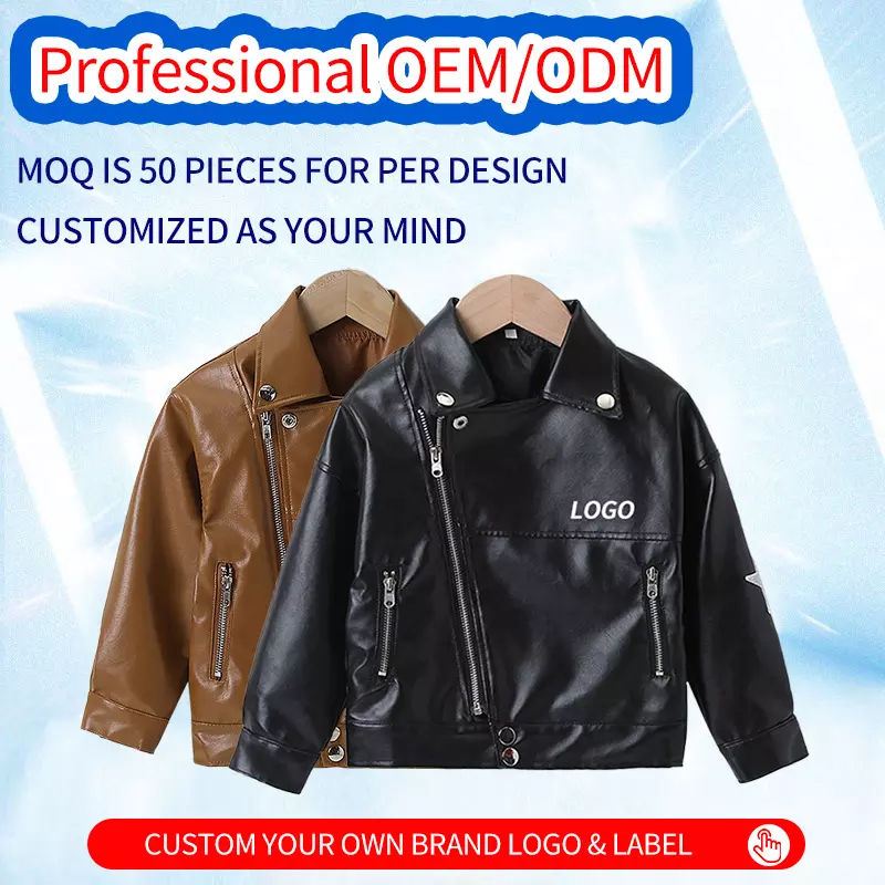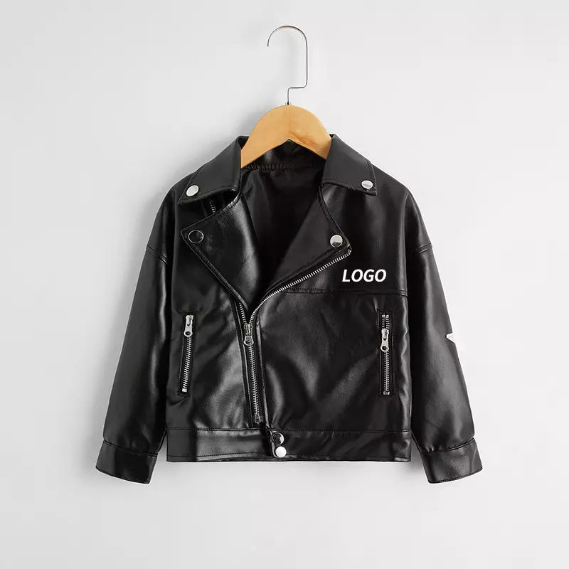 Trendy Children's Leather Jacket for Boys Girls Stand Collar Eco-Friendly Reversible Waterproof Breathable Solid Pattern Front