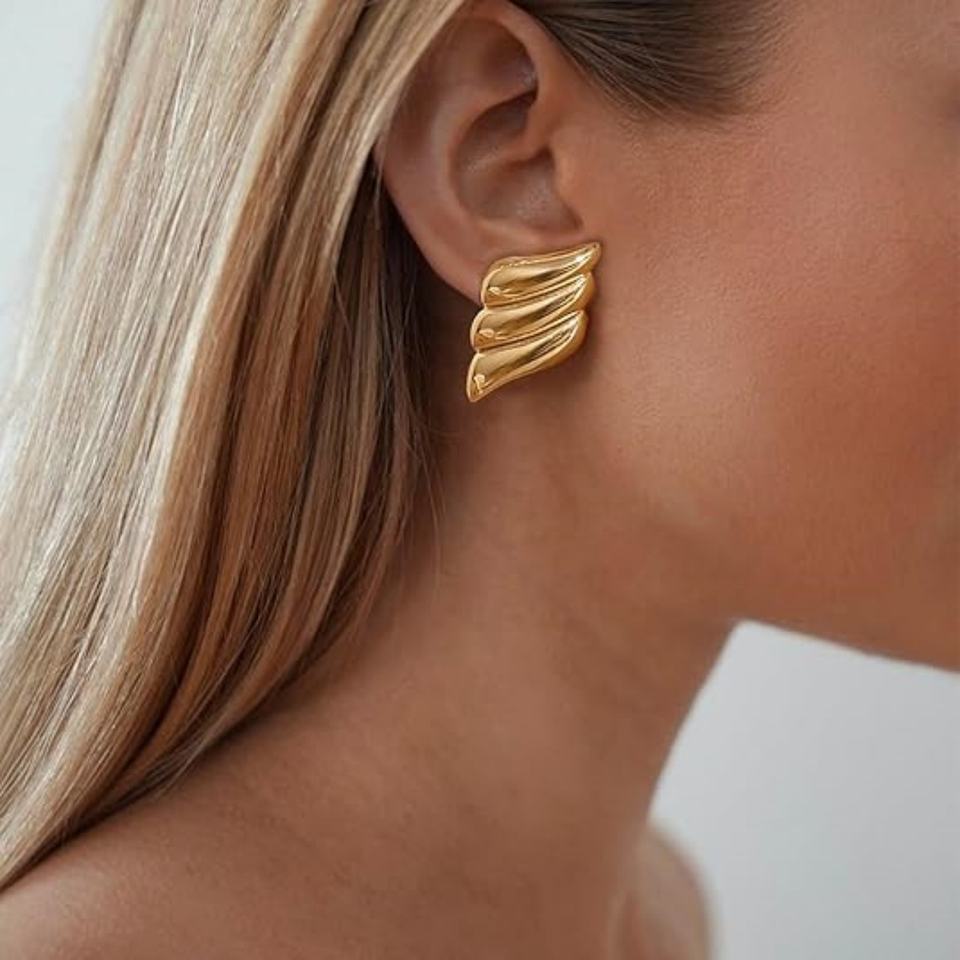 Trendy Chunky Statement Plated Gold Earrings Lightweight Dainty Women Jewelry Wings Textured Dome Stainless Steel Stud Earrings