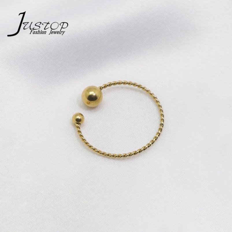 Trendy Classic Women's Jewelry Stainless Steel 18K Gold Geometric Minimalist Two Ball Pearl Open Rings Environmental Friendly