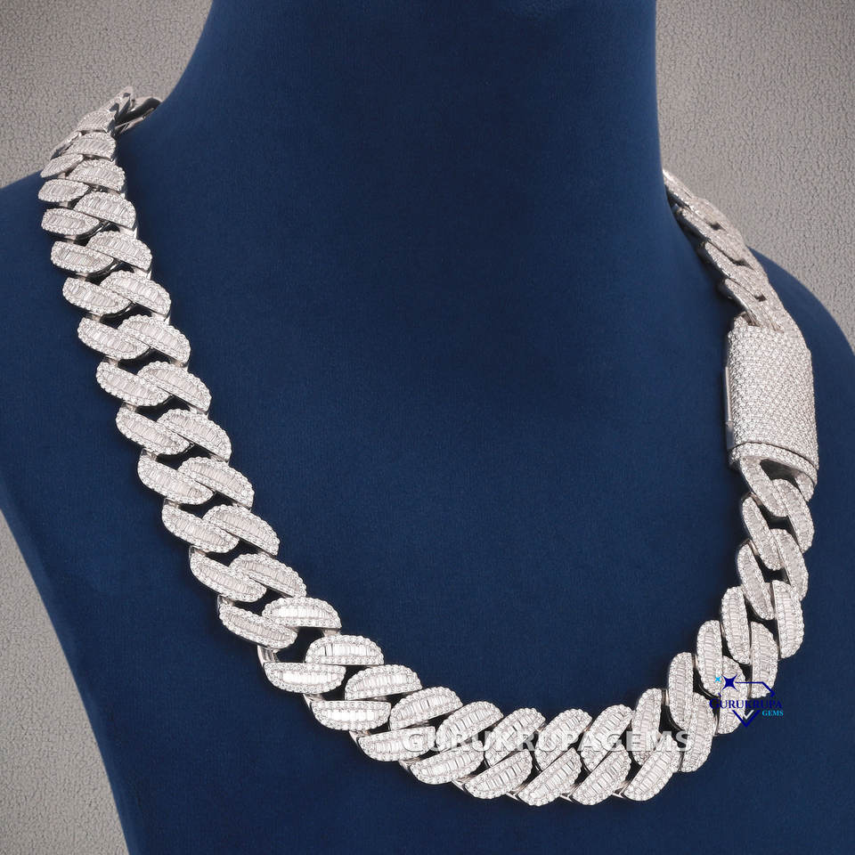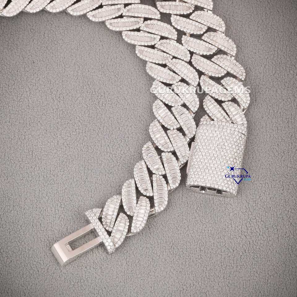 Trendy Collection Fine Jewelry 925 Silver VVS Clarity Round & Baguette Cut Lab Grown Diamond Iced Out Rapper Cuban Link Chain