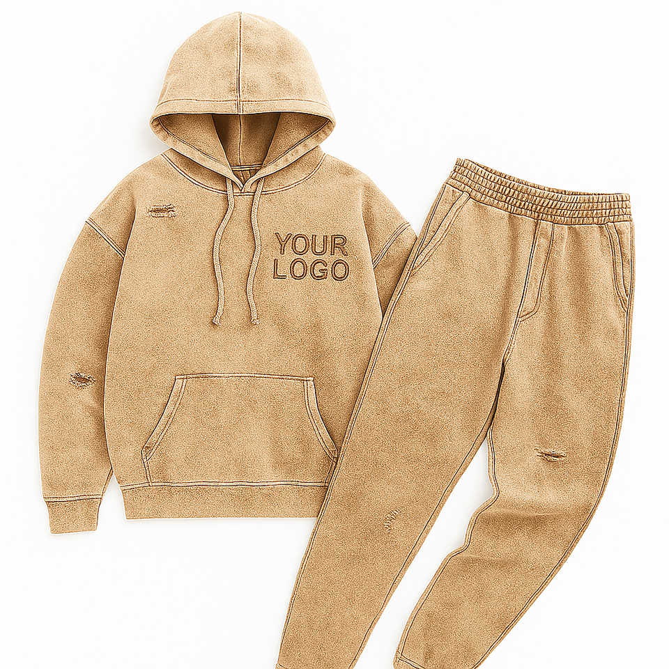 Trendy Custom Acid Wash Pullover Hoodie Sets Vintage Distressed Loose FIT Causal Jogger Tracksuit for Men