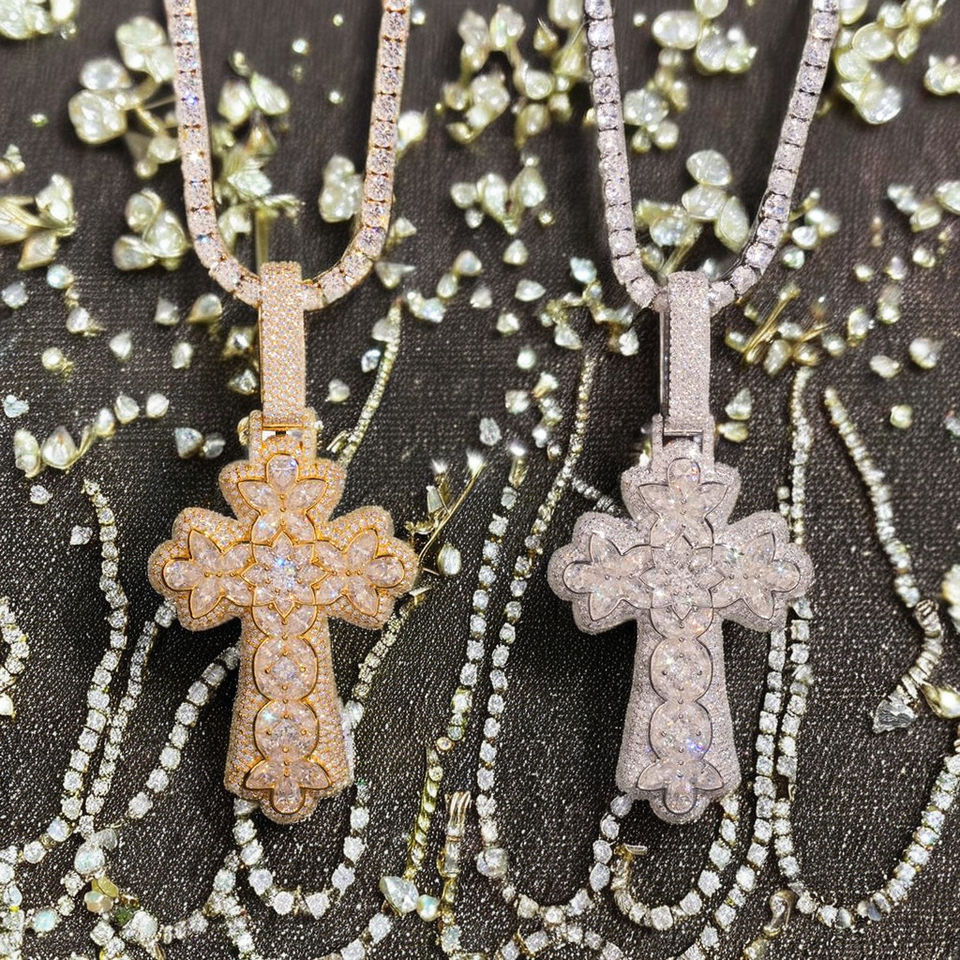 Trendy Custom Hiphop jewelry 925 Silver Rhodium Plated Moissanite Iced Jesus Cross Christian Religious Charm Necklace for Party