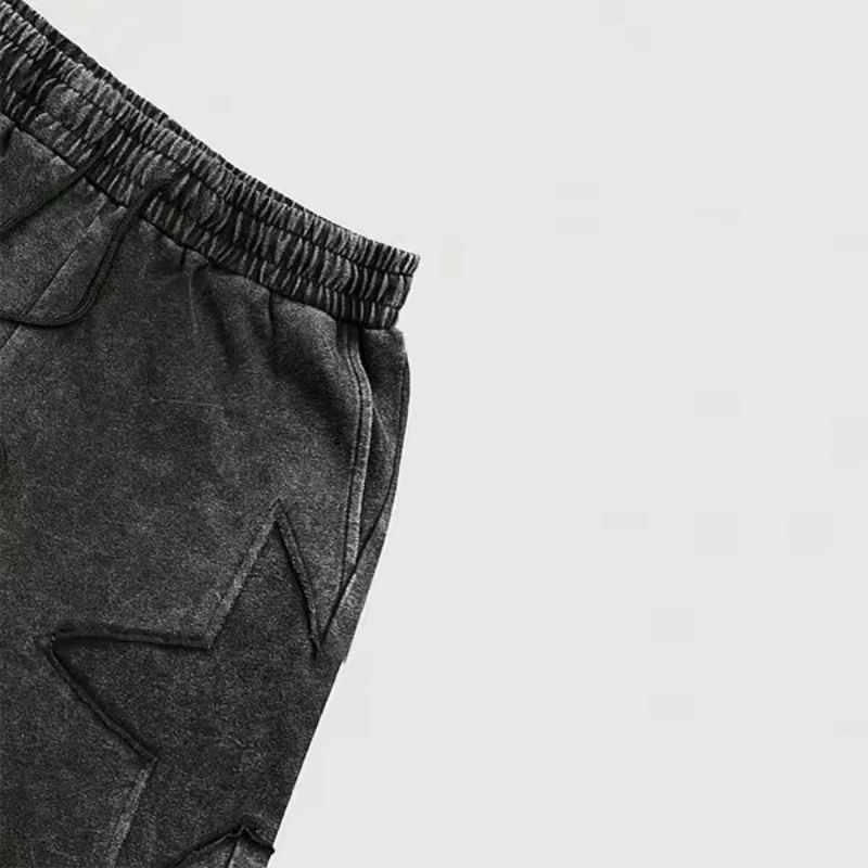 Trendy Custom Summer French Terry 100% Cotton Acid Wash Elastic Waist Shorts Vintage Oversized Distressed Embroidery Shorts Men