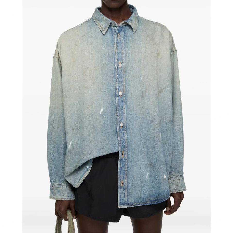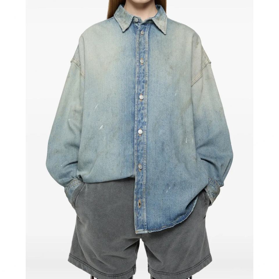 Trendy Custom Unisex Long Sleeve Streetwear Casual Vintage Button up Boxy Fit Oversized Paint Splatter Denim Shirts Men