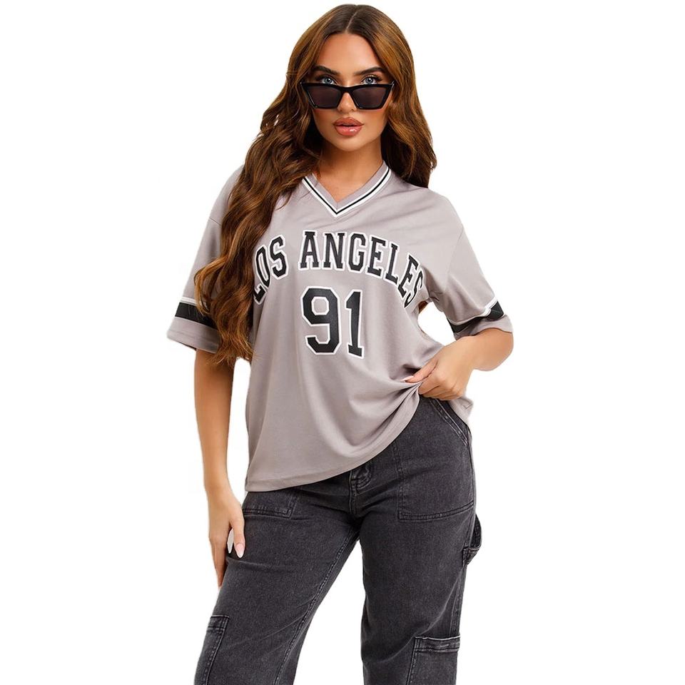 Trendy Custom V-Neck Breathable Fabric Sports Shirt for Women New Design Printed Jersey Style For Ladies Custom Colors & Logos