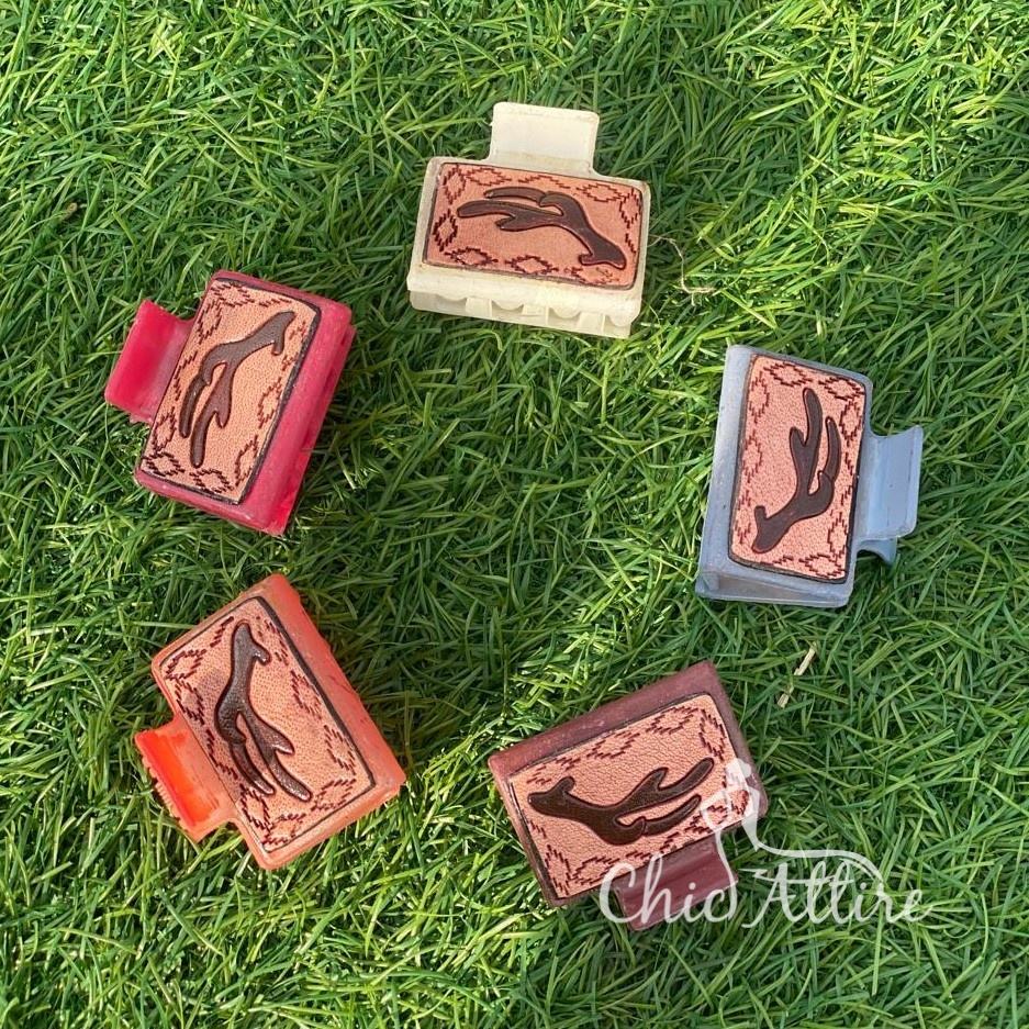 Trendy Customizable Handmade Tooled Genuine Leather Mini Claw Clips Personalized Engraved Leather Hair Accessories for Women