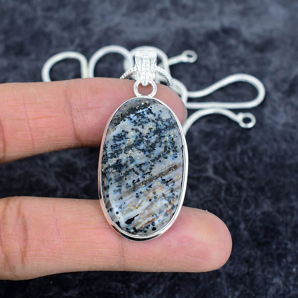 Trendy Dendrite Agate 925 Sterling Silver Oval Gemstone Pendant Necklace for Men Women Engagement Wedding & Anniversary