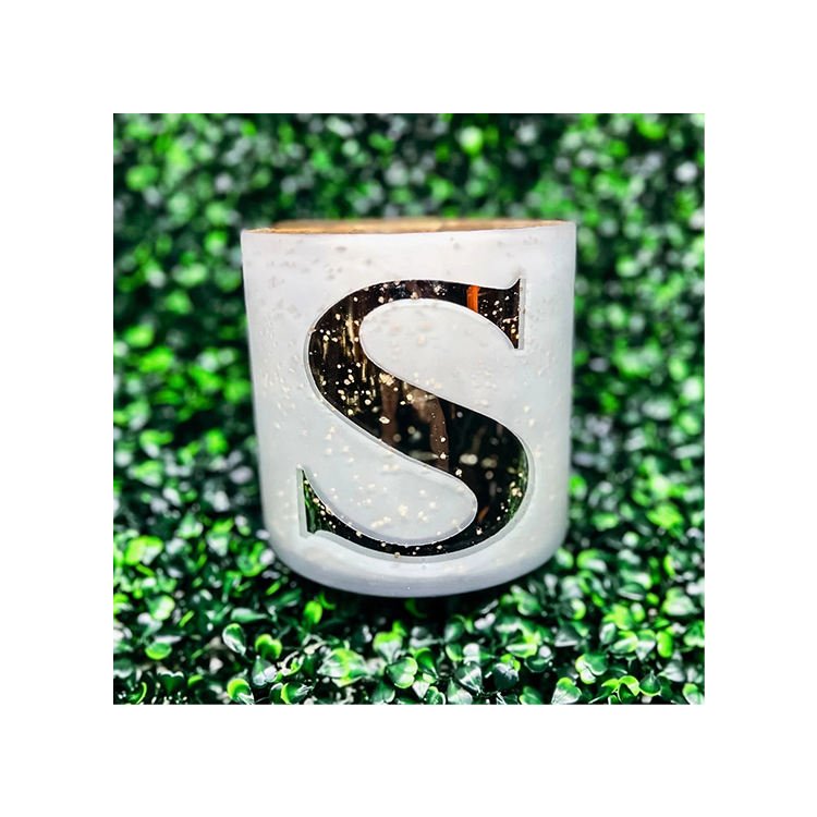 Trendy Design Best Mercury Alphabet Glass for Candles Soft with Gold Foil Glass