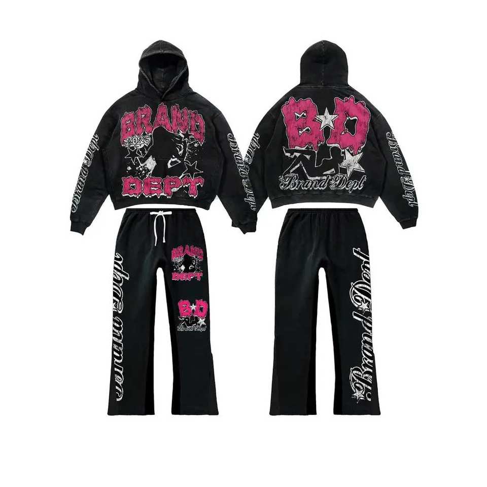 Trendy Design Custom Washed Tracksuit Distressed Embroidery French Terry Drop Shoulder Cotton Made Boxy Tracksuit