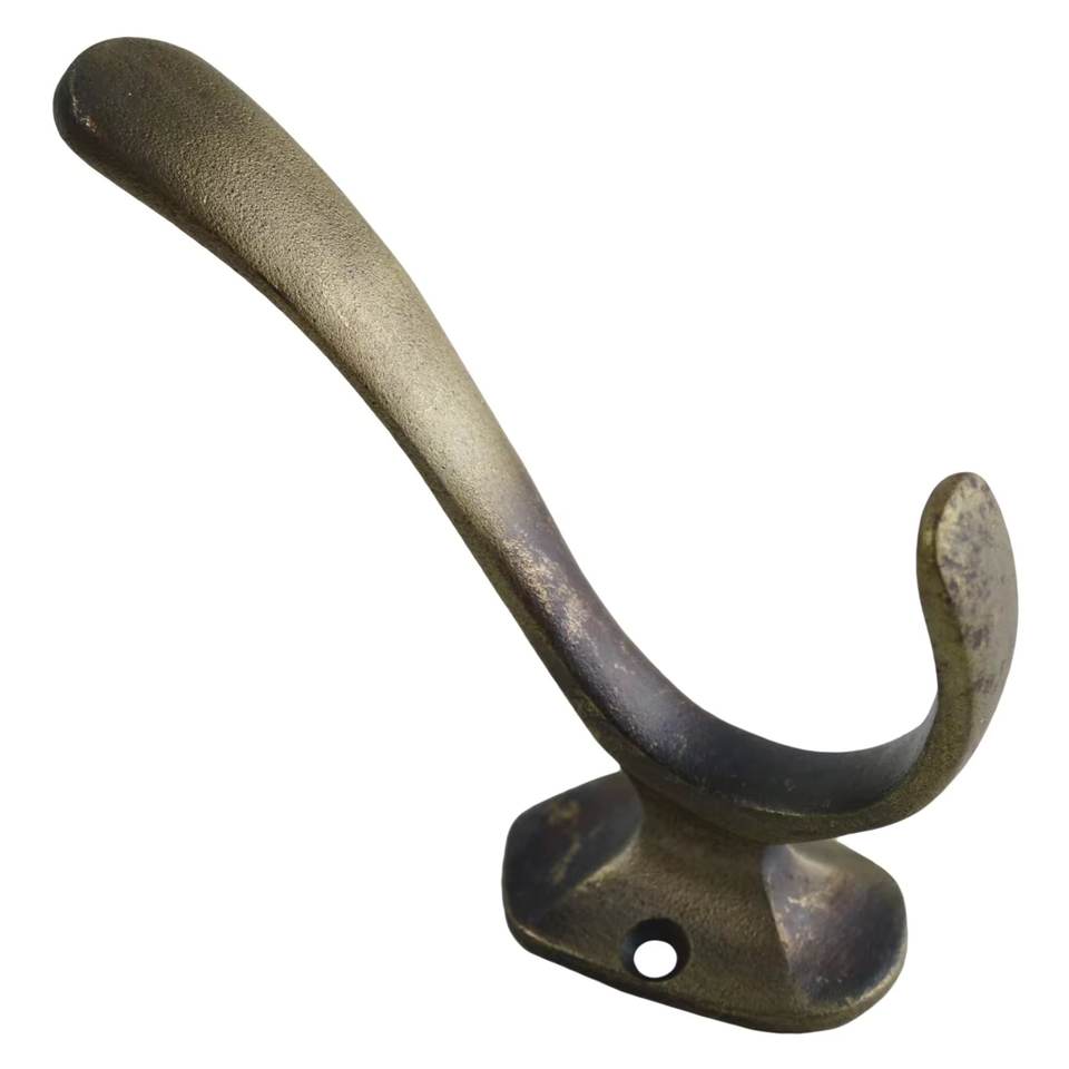 Trendy Design Double Prong Metal Hook Wall Mounted Antique Finished Decorative Hooks for Living Room Hanging Coat & Hat