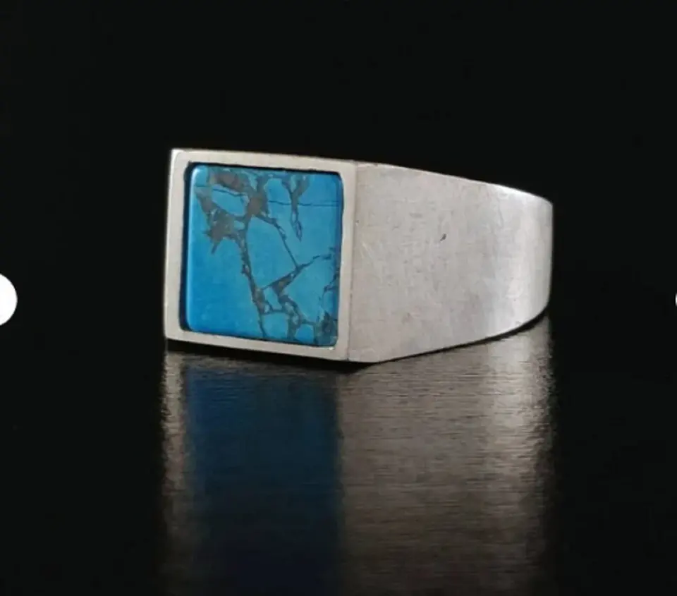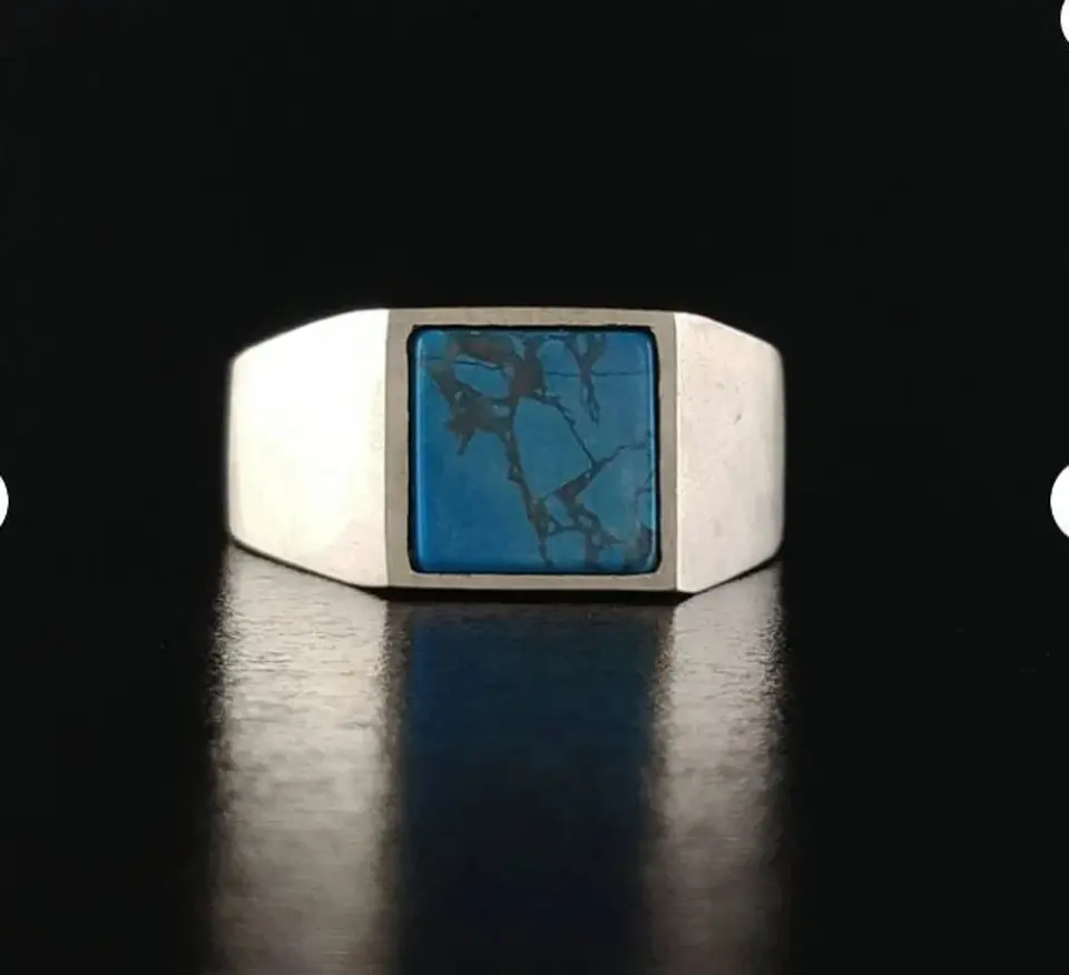 Product name:Sterling Silver Statement Turquoise Signet Ring