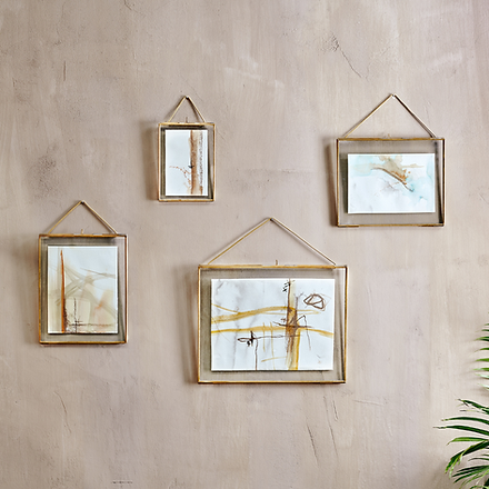 Trendy Design Hanging Glass Photo Frames With Brass Border Gold Finished For Home and Office Decor Glass Photo Frames