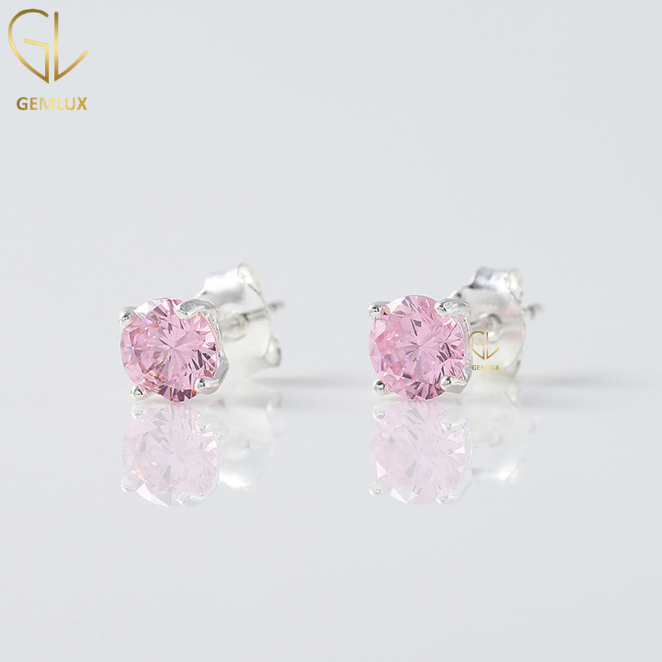 Trendy Design New Arrivals 925 Silver Round Cut Lab Grown Pink Diamond Screw Back Stud Earrings For Women Wholesale Price