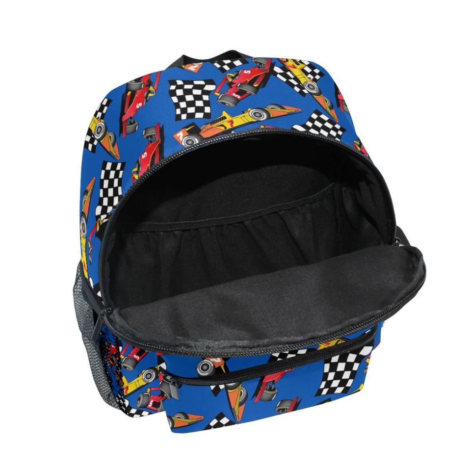 Trendy Designer Printing Custom Racing Cars Print Polyester Backpack Kids Book Bag Anti Theft School Bags