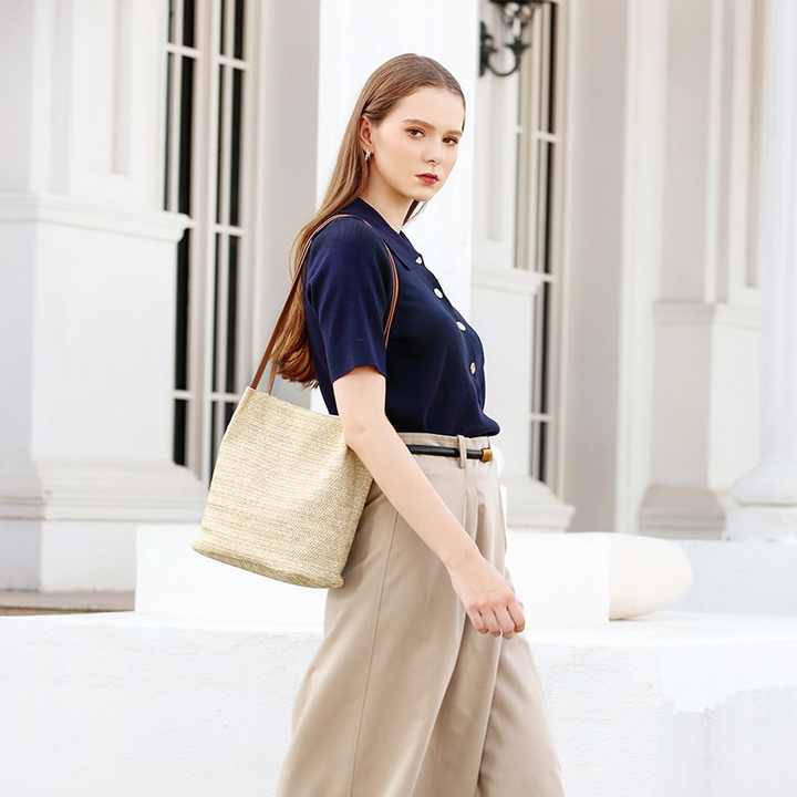 Trendy Digital Printed Women's Woven Bucket Bag Elegant All-Seasons Fashionable Wholesale Straw Bag