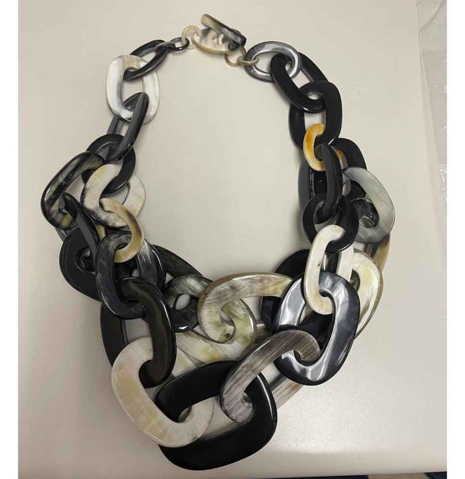 Trendy Eco-Friendly Handmade Modern Link Chain Shape Gold Plated Stylish Horn Chain Design Natural Horn Necklace Earrings Set