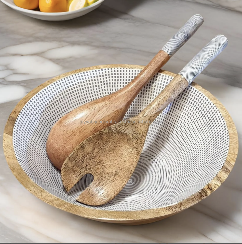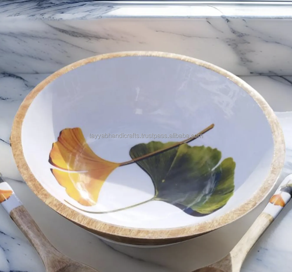 Trendy Epoxy Resin Wood Salad Bowl Mango Wood Enamel Sticker Printed for Party Serving from India