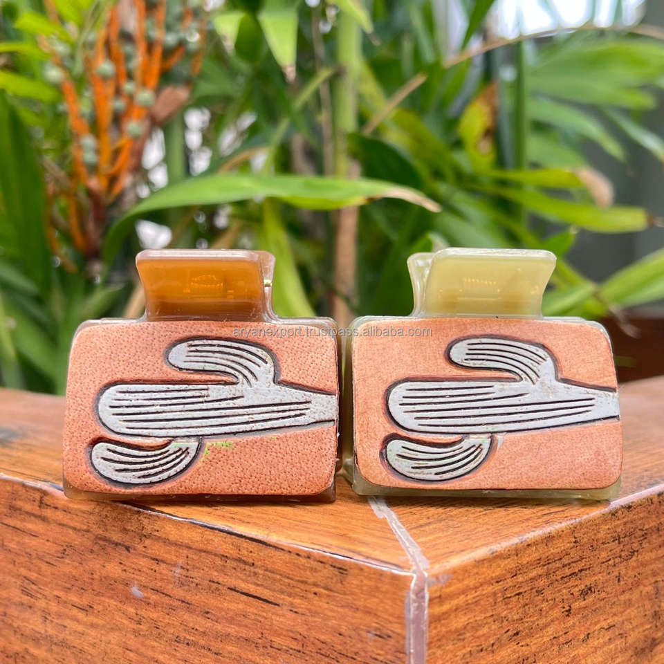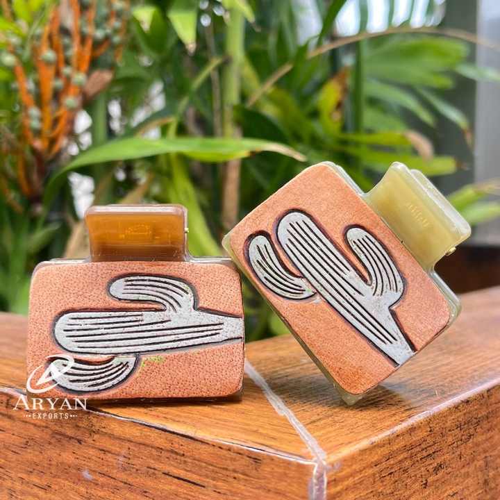 Product name:Tooled Engraved Leather Women's Hair Clips