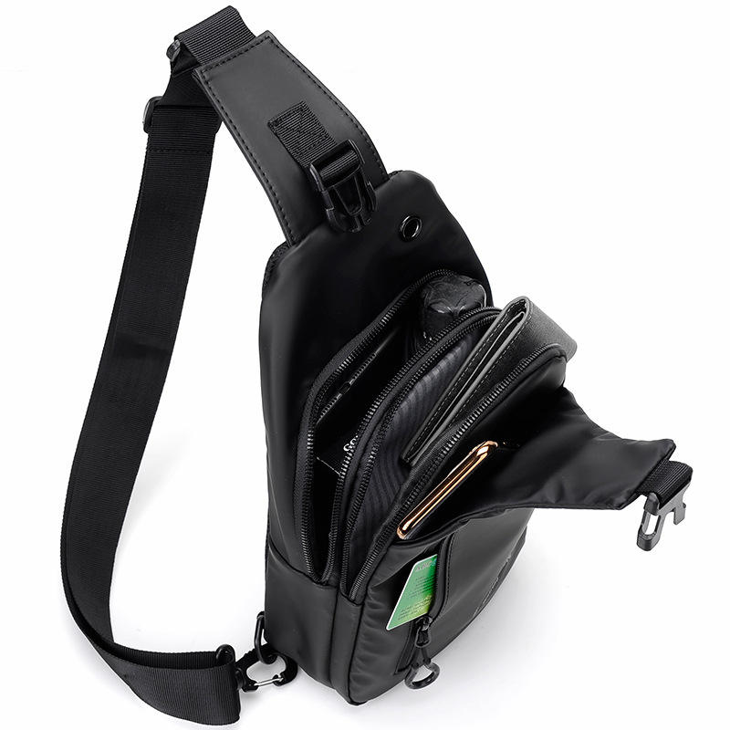 Trendy Fashion Black Men's Chest Bags Waterproof Outdoor Sports Black Shoulder Sling Bags With USB Charger