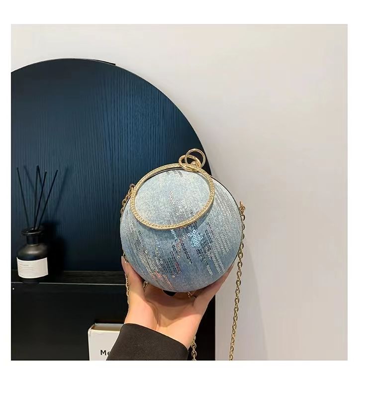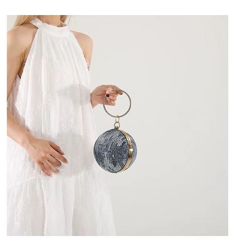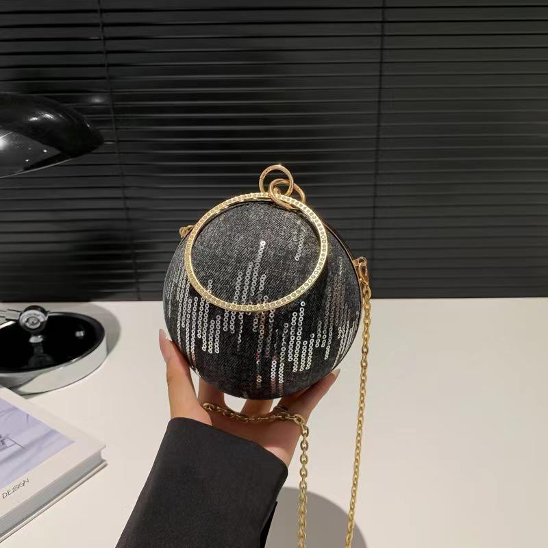 Trendy Fashion Party Rhinestone Sequined Ring Lift Evening Shoulder Chain Bags Ball Shape Handbag for Women