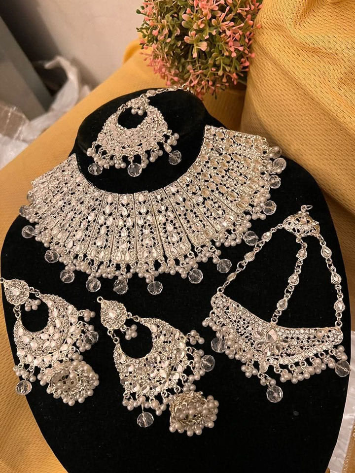 Trendy Fashion Vintage Hand Crafted Versatile Women's 5 Pieces Bridal Jewelry Sets Fresh Arrivals Tikka Jhumka Earrings & Choker