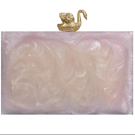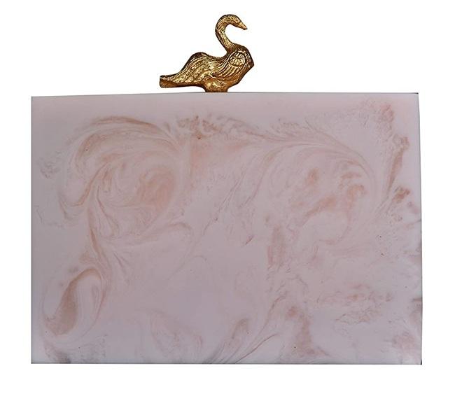 Trendy Fashionable Resin Clutch Bag Rectangle Mix Colour Strip Gold Plated Handle Sling Purse Box Handbag