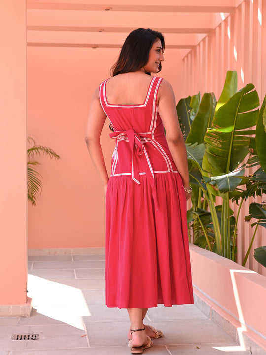 Trendy Fit Rose Dress here to steal hearts Made from soft cotton slab gorgeous rose dress features drop waist and patterned