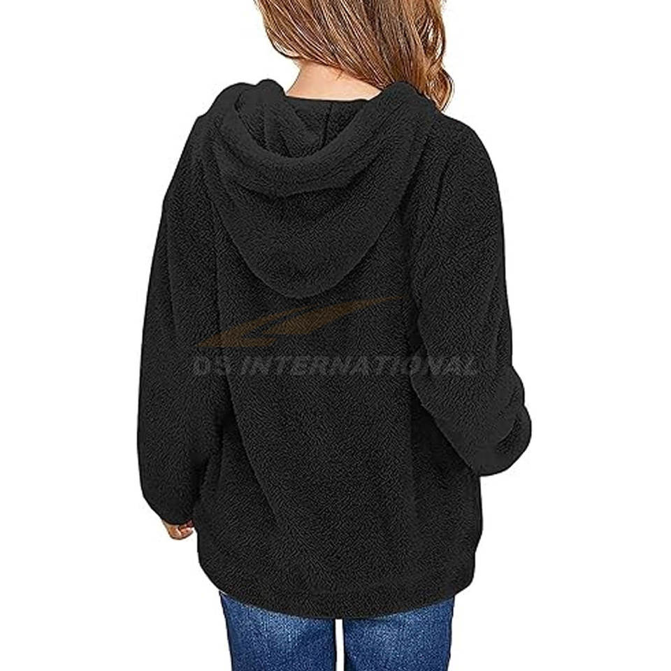 Trendy Fleece Hoodie Sweatshirt for Women and Men Pullover Casual Outwear Coat with Pocket Perfect for Autumn Winter C-black