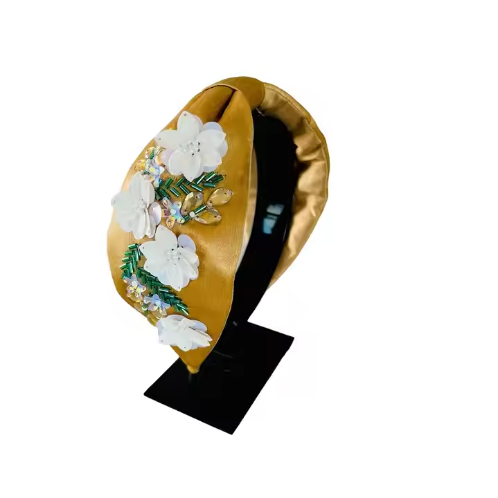 Trendy Game Day Beaded Hairband in White and Golden Color With Team Colors Designs on Sale-Headbands Best Selling Product