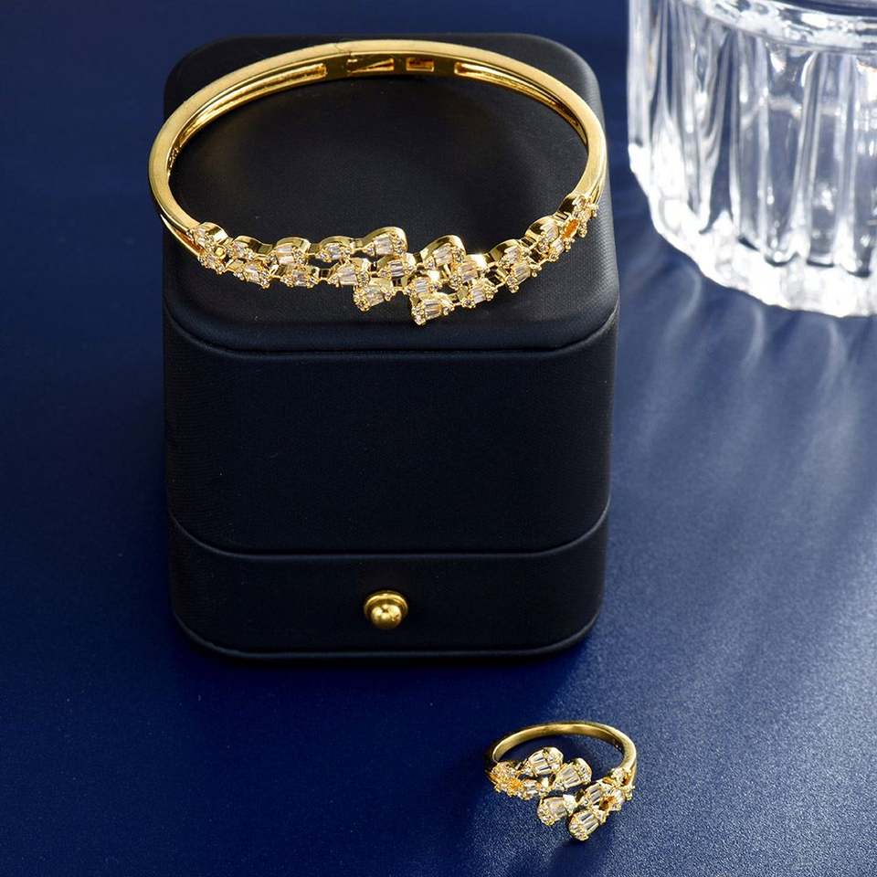 Trendy Geometric Statement Bangle Ring Sets Jewelry Set for Women Wedding Cubic ZirconIA Dubai Party Bracelet S-003