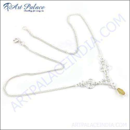 Trendy Glamours Silver Fashion Pendant Necklace with Citrine Gemstone for Party-Wear for Girls