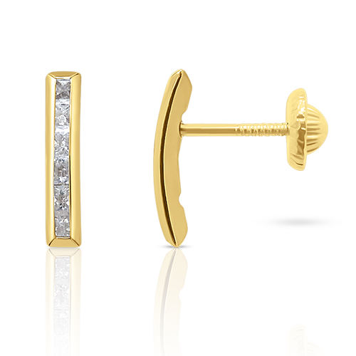 Trendy Gold Fine Stud Earrings with CZ Stones Drop Design in Rose Yellow Star Pattern for Engagement Pearls & Diamonds