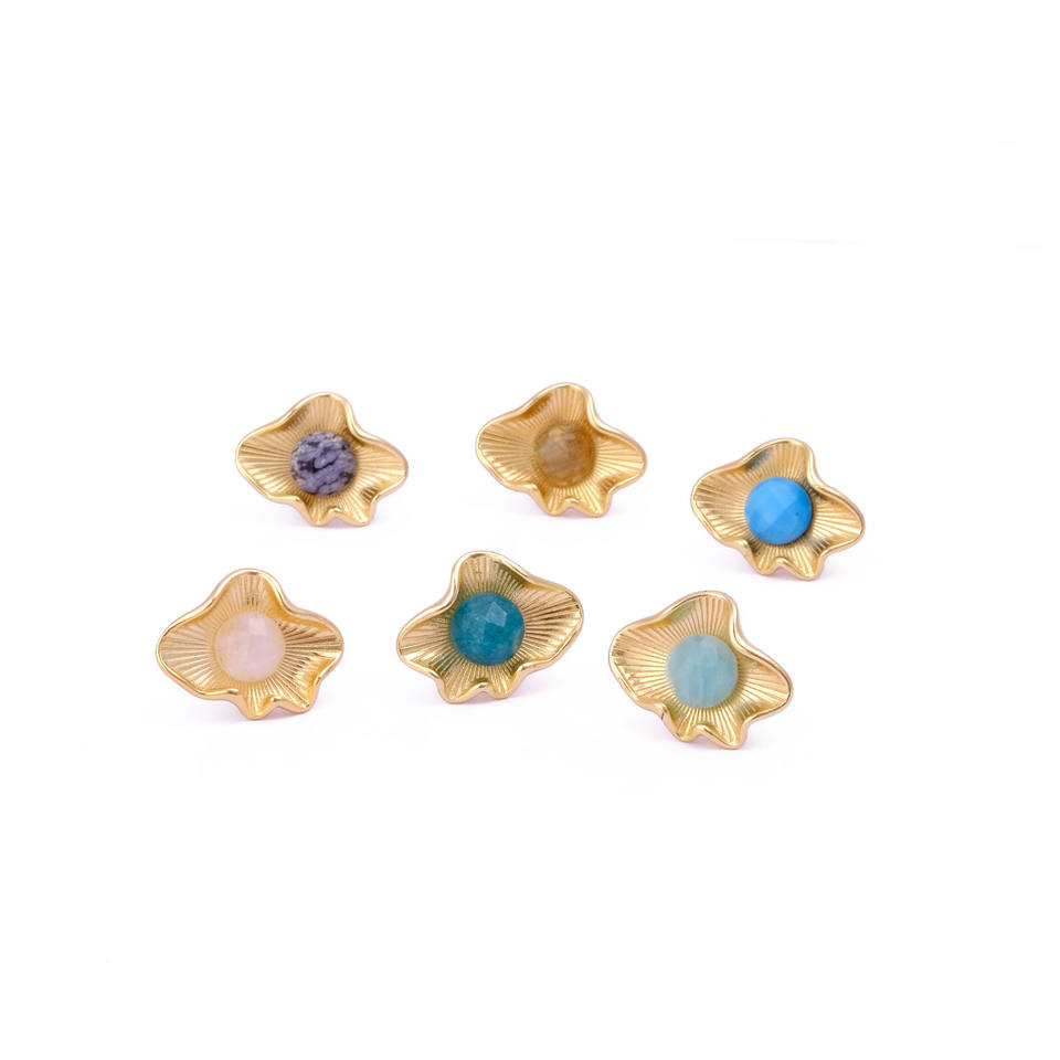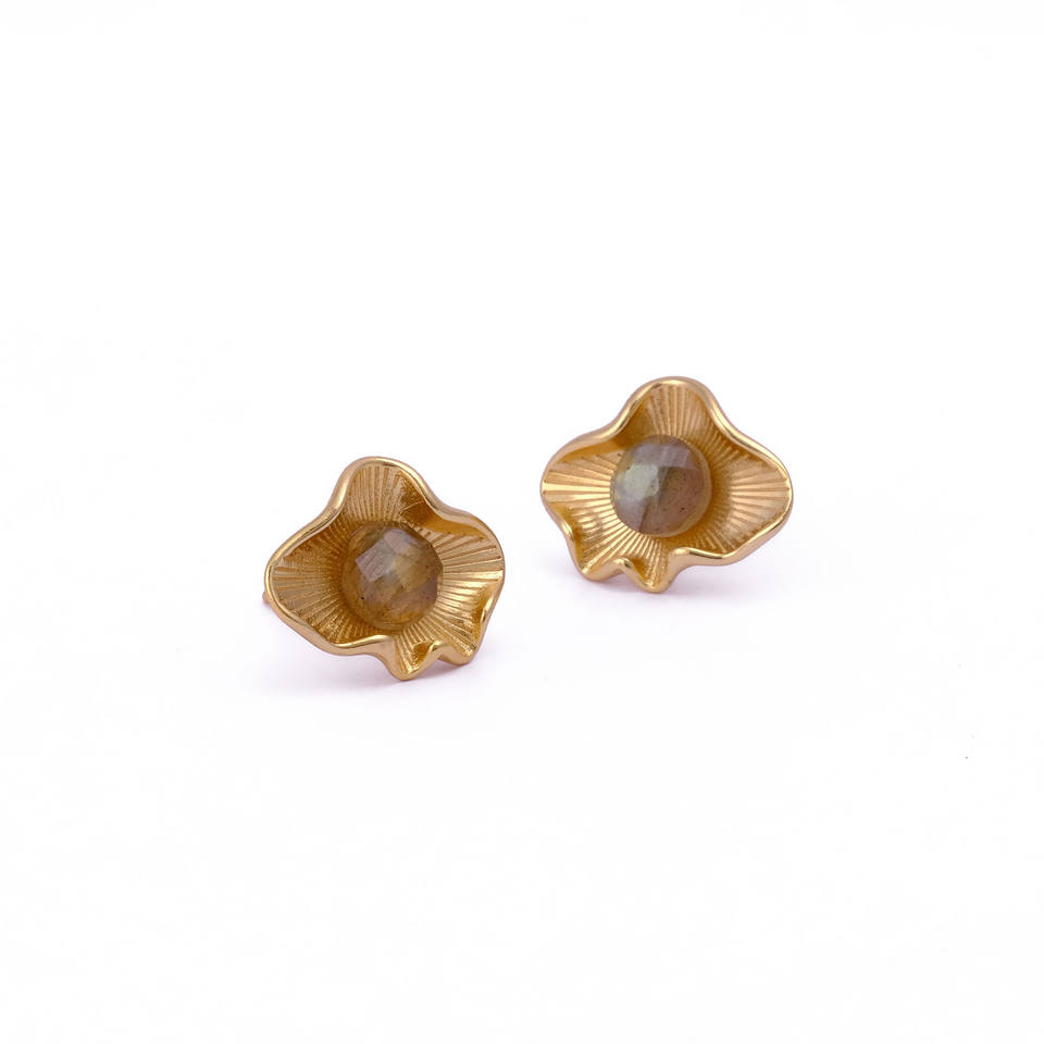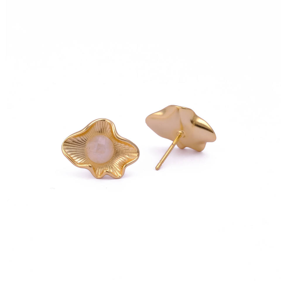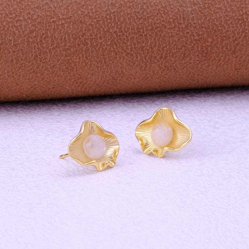 Trendy Gold-Plated Brass Stud Earring Inspired by Twisted Flower and Rainbow Moonstone Fashionable Gemstone Design Stud Earrings