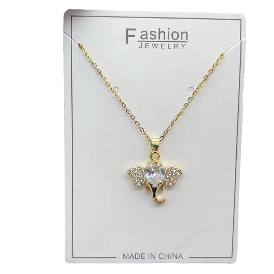 Trendy Gold Plated Stainless Steel Crystal Diamond Elephant Pendant Necklace for Women Girls Wedding Jewelry