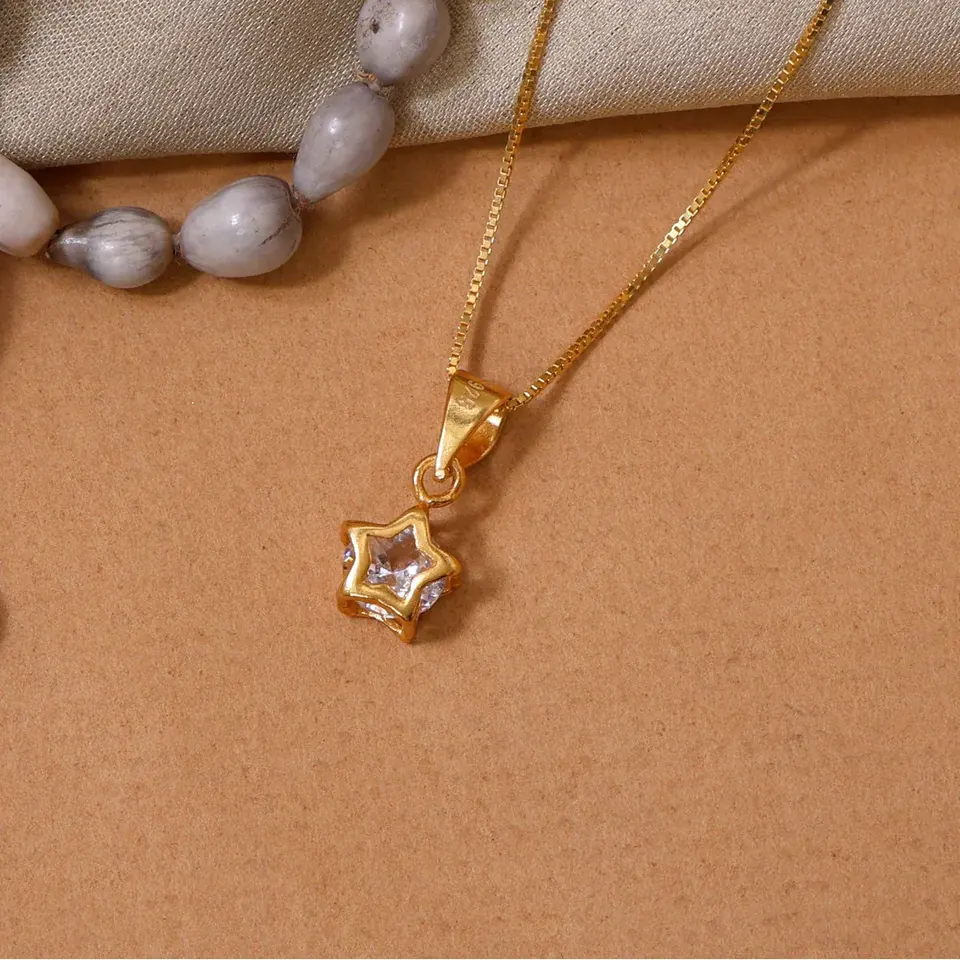 "Trendy Gold-Plated Stainless Steel Pendant Necklace with Cubic Zirconia Accent"
