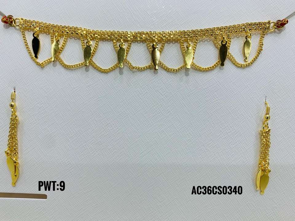 Trendy Gold Plated Women's & Baby Online Design Chik Set with Link Chain Earrings Wonderful Brass Jewelry