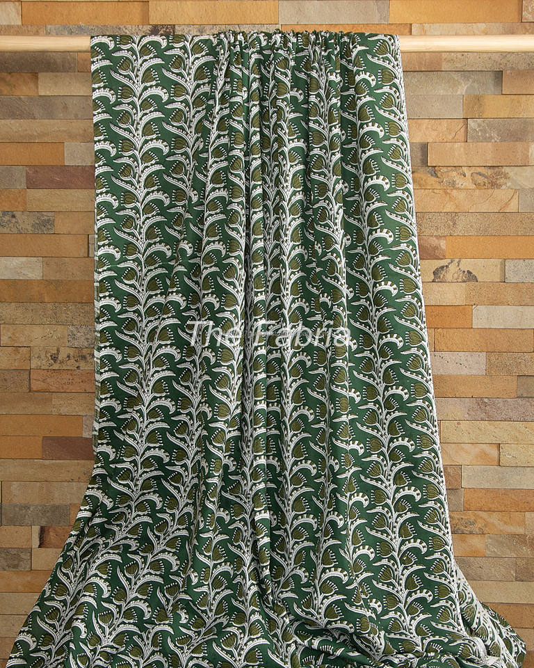 Trendy Green Floral Cotton Fabric Hand Block Printed Multi-Color Design for Dresses, Upholstery & Crafts Wholesale Available
