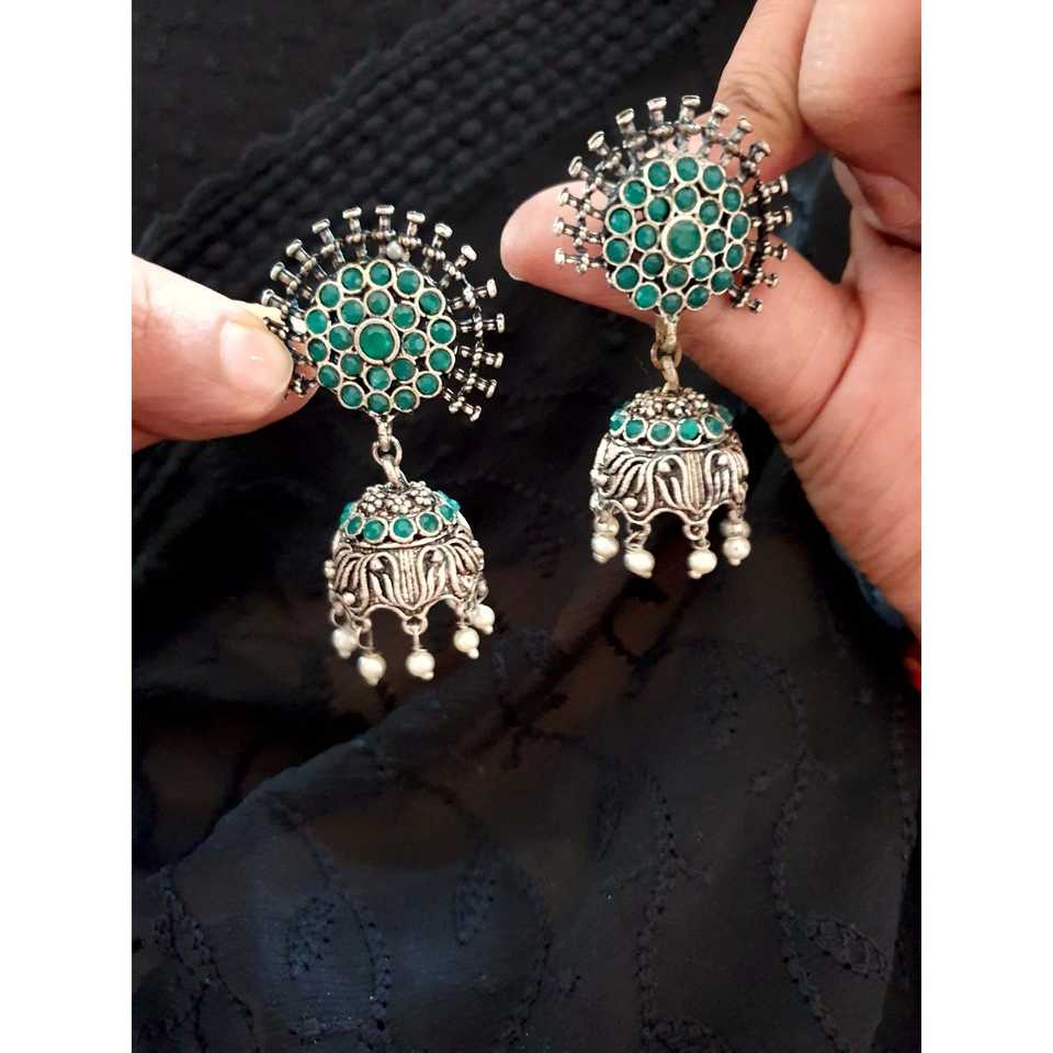 Oxidized Green Stone Jhumka Earrings for Women Traditional Indian Ethnic Drop Earrings Handmade Party Wear Jewelry