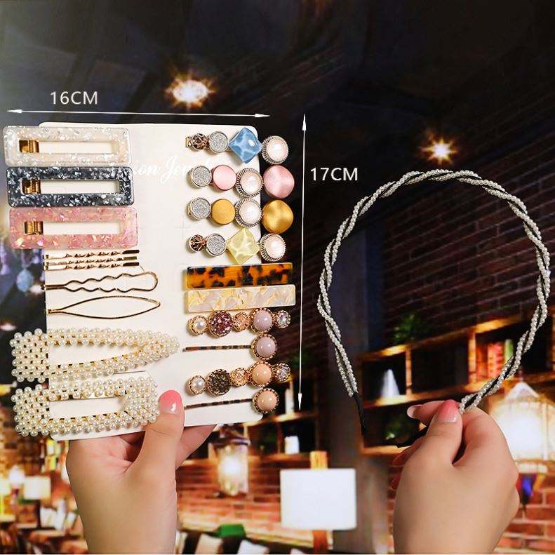 Trendy Hair Accessories New Word Clip Pearl Barrettes Suit Combination Girl Heart Geometric Bang Side Headdress