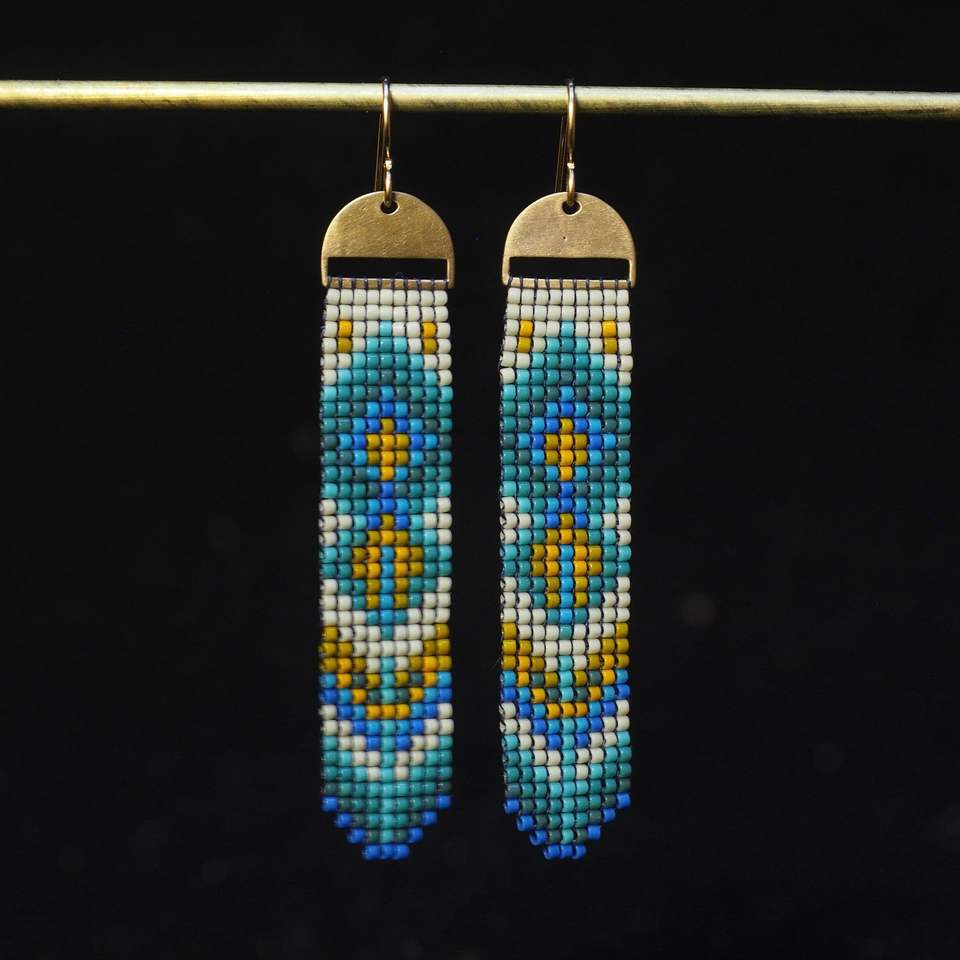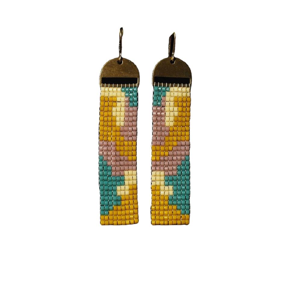 Trendy Handmade Bohemian Polychromatic Square Glass Seed Beads Dangle Rhombus Fringed Drop EarringS Tassel Women's Earrings